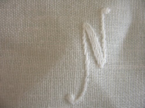 アウトラインステッチで、お好きなイニシャルを一文字刺しゅうします。