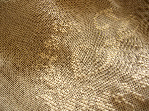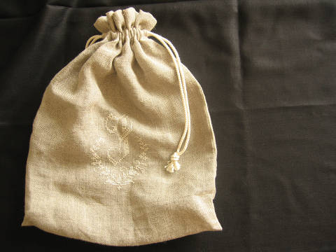 ざっくりとしたリネン地で巾着型のランジェリーバックを作りました